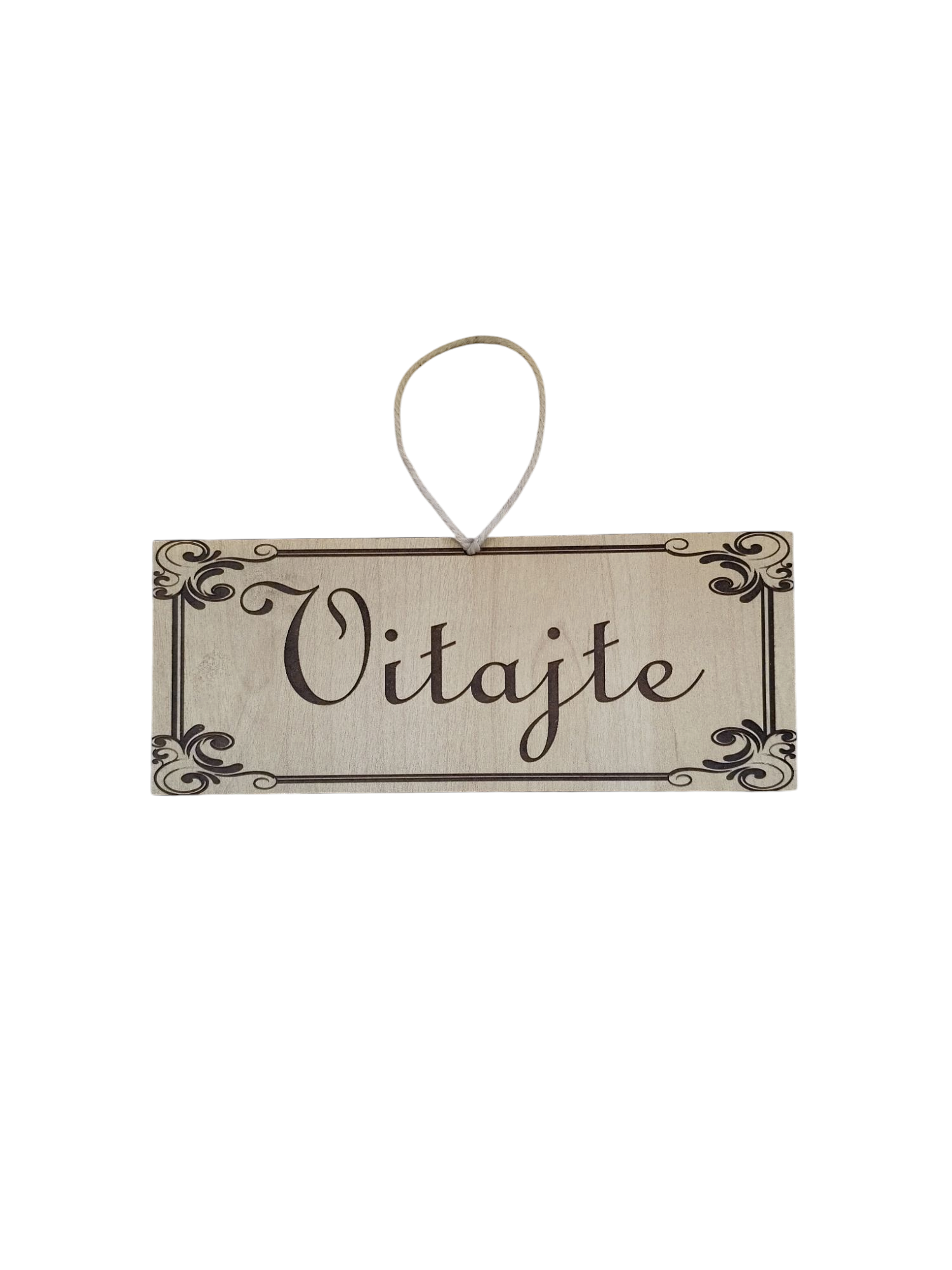 Privítajte hostí štýlovo s našou drevenou tabuľkou "Vitajte", ktorá dodá vášmu domovu osobitý charakter. Táto krásna drevená tabuľa na zavesenie je vyrobená z kvalitného HDF dreva, ktoré zaručuje jej trvácnosť a elegantný vzhľad.