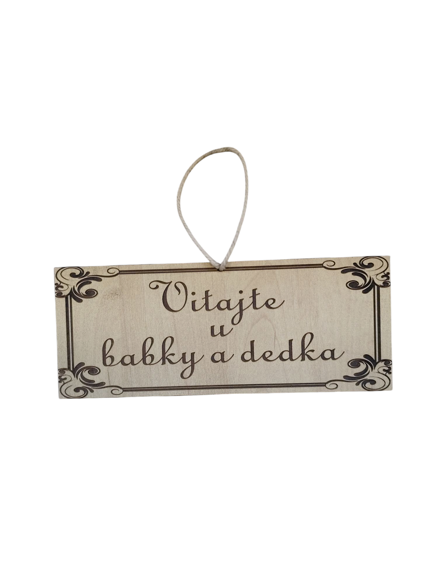 Originálna drevená tabuľka Vitajte u babky a dedka je srdečnou dekoráciou, ktorá prinesie úsmev do každého domova starých rodičov! Vyrobená z kvalitného HDF dreva dodá príbytku babky a dedka útulnú atmosféru plnú lásky a vrelého privítania.