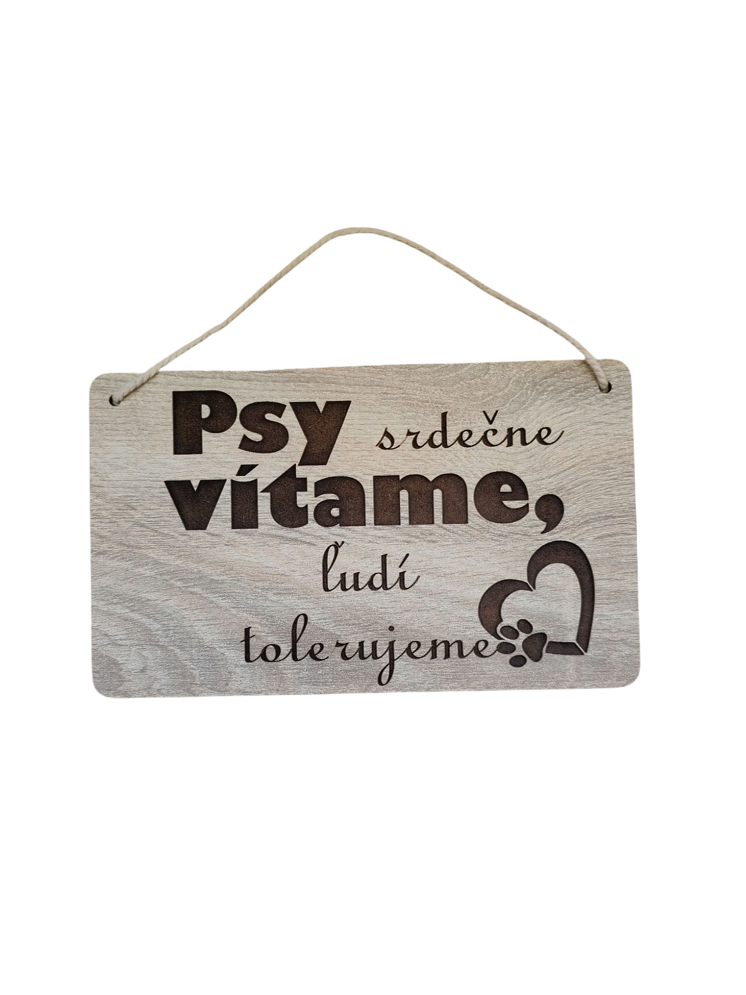 Drevená tabuľka - Vítame psíkyŠtýlová drevená tabuľka Vítame psíky je dokonalou dekoráciou pre každý domov, kde sú chlpat...