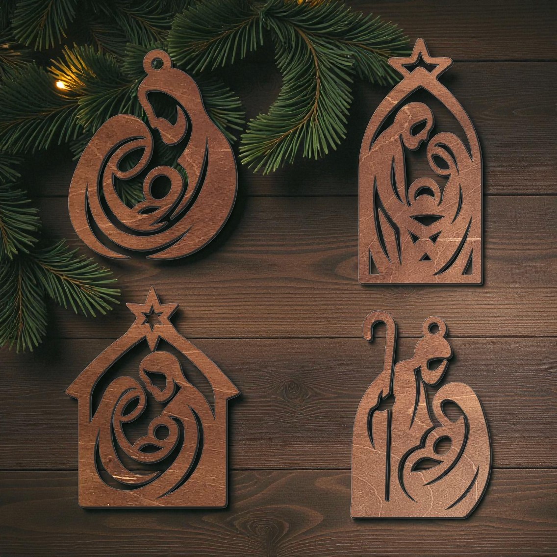 Ozdoby ponúkame samostatne v štyroch variantoch, z ktorých si môžete vybrať podľa svojho vkusu (vzor 1, vzor 2, vzor 3 alebo vzor 4). Každý z nich zobrazuje inú podobu Svätej rodiny, Betlehema či pastiera s palicou.