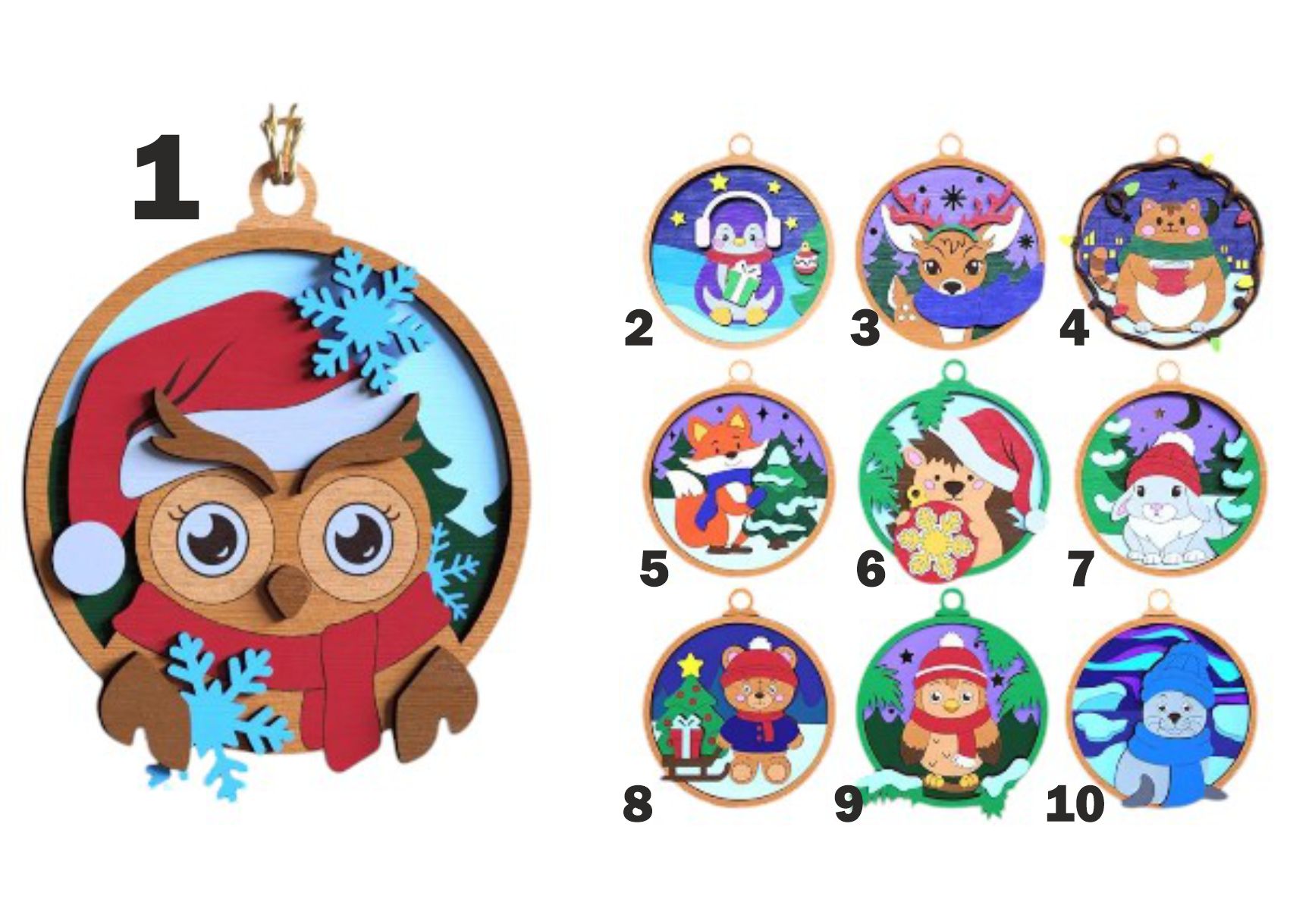 Kreatívne drevené vianočné ozdoby na vymaľovanie – viacvrstvové zimné zvieratká 🦉❄️
