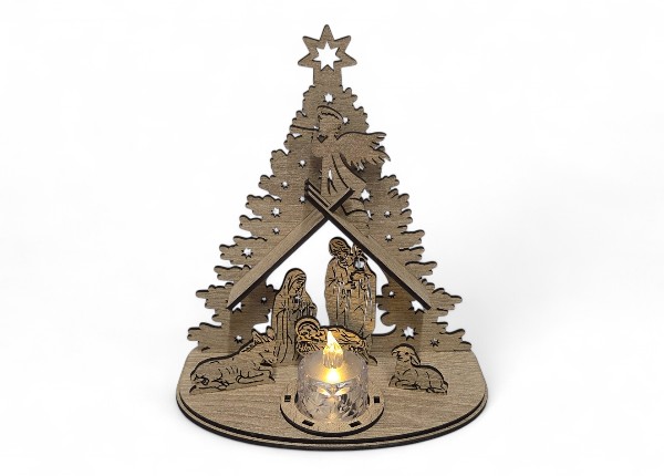 Betlehem je vyrobený z kvalitného dreva, precízne vyrezaný laserom a ručne dokončovaný. Vďaka stabilnému podstavcu stojí pevne, takže sa skvele hodí na poličku, stolík či k adventným dekoráciám.