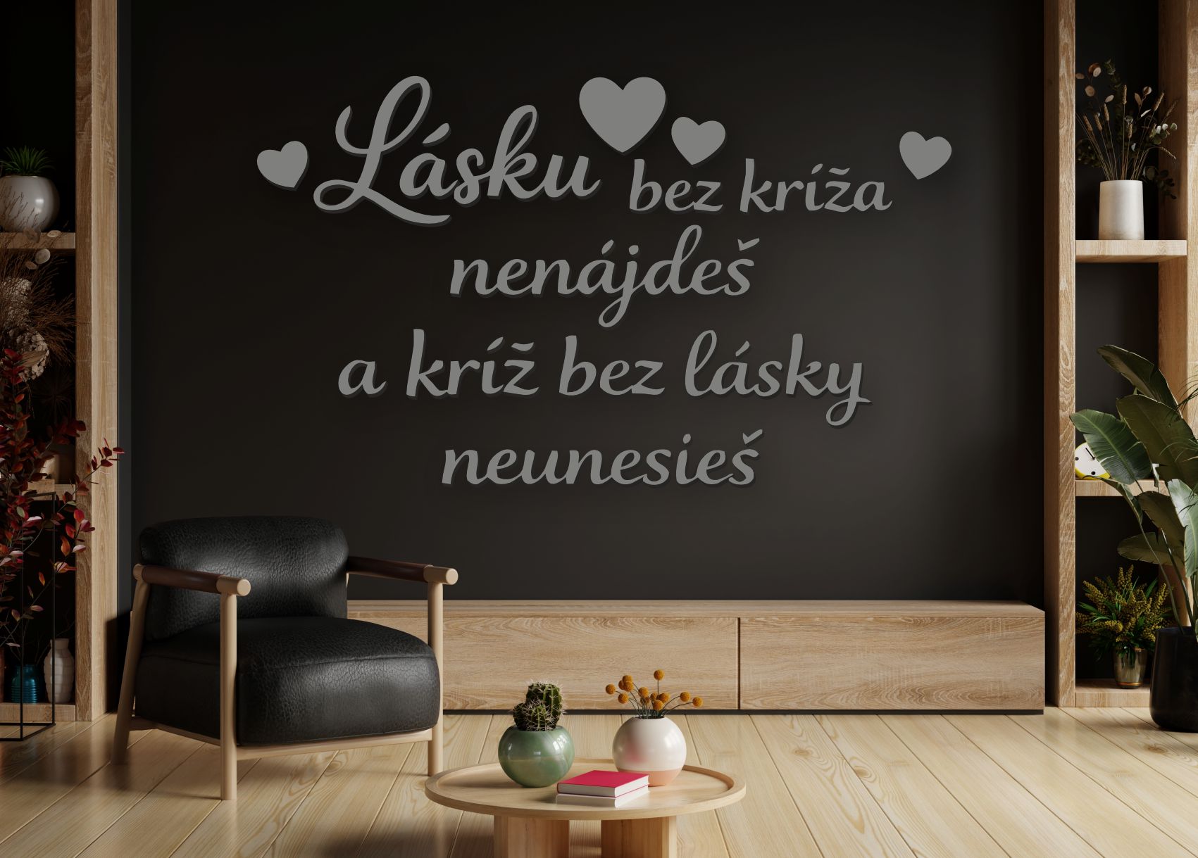 Drevený citát na stenu – Lásku bez kríža nenájdeš a kríž bez lásky neunesieš nesie hlbokú myšlienku o rovnováhe medzi láskou a životnými skúškami. Pripomína, že pravá láska nie je len o radosti, ale aj o sile zvládať výzvy spolu.