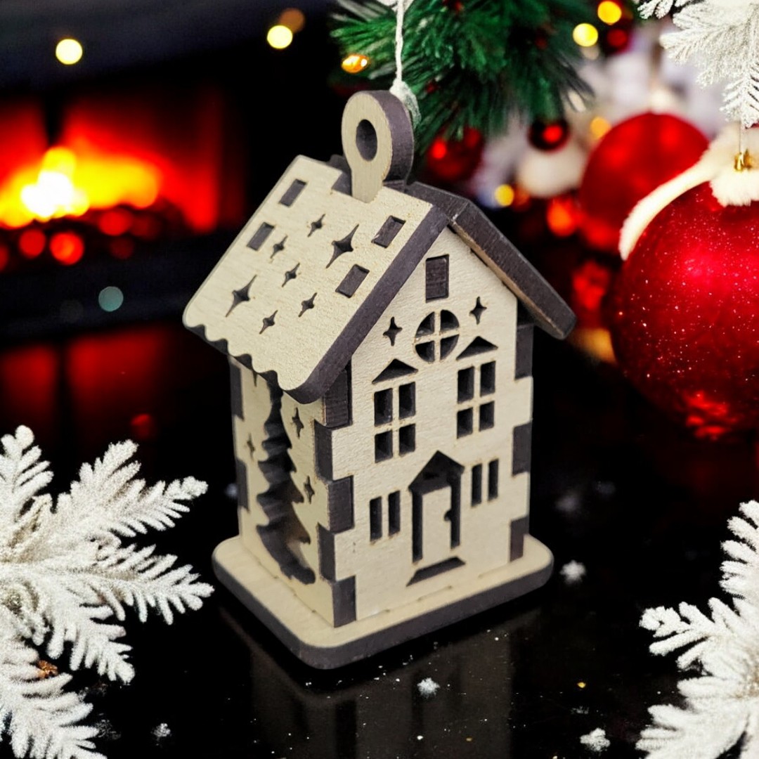 Tieto unikátne ozdoby sú vyrobené z vysokokvalitného HDF dreva s hrúbkou 3 mm, vďaka čomu sú nielen krásne, ale aj odolné a trvácne. Môžete si vybrať zo 4 rôznych vzorov, ktoré sa hodia ku každému štýlu vianočného stromčeka. Či už preferujete tradičný, moderný alebo rustikálny vzhľad, naše domčeky dokonale zapadnú a stanú sa neprehliadnuteľnou súčasťou Vašej vianočnej výzdoby.