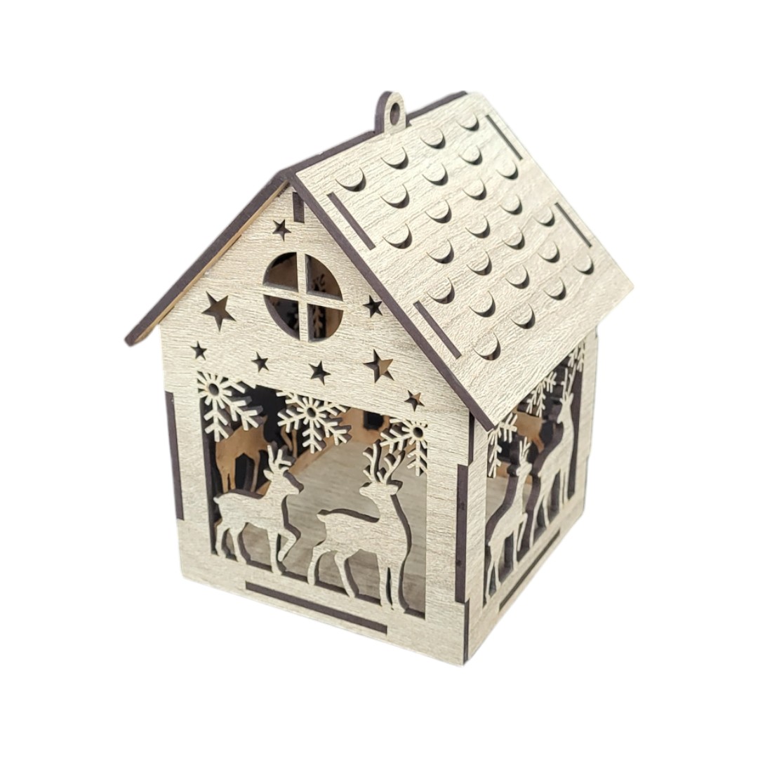 Drevený domček je dostupný v dvoch veľkostiach, takže si môžete zvoliť ten, ktorý vyhovuje vašim priestorovým možnostiam a potrebám. Menší domček je perfektný do menších izieb alebo ako dekorácia na poličku, zatiaľ čo väčší sa skvele hodí ako dominantný prvok v obývacej izbe či spálni.
