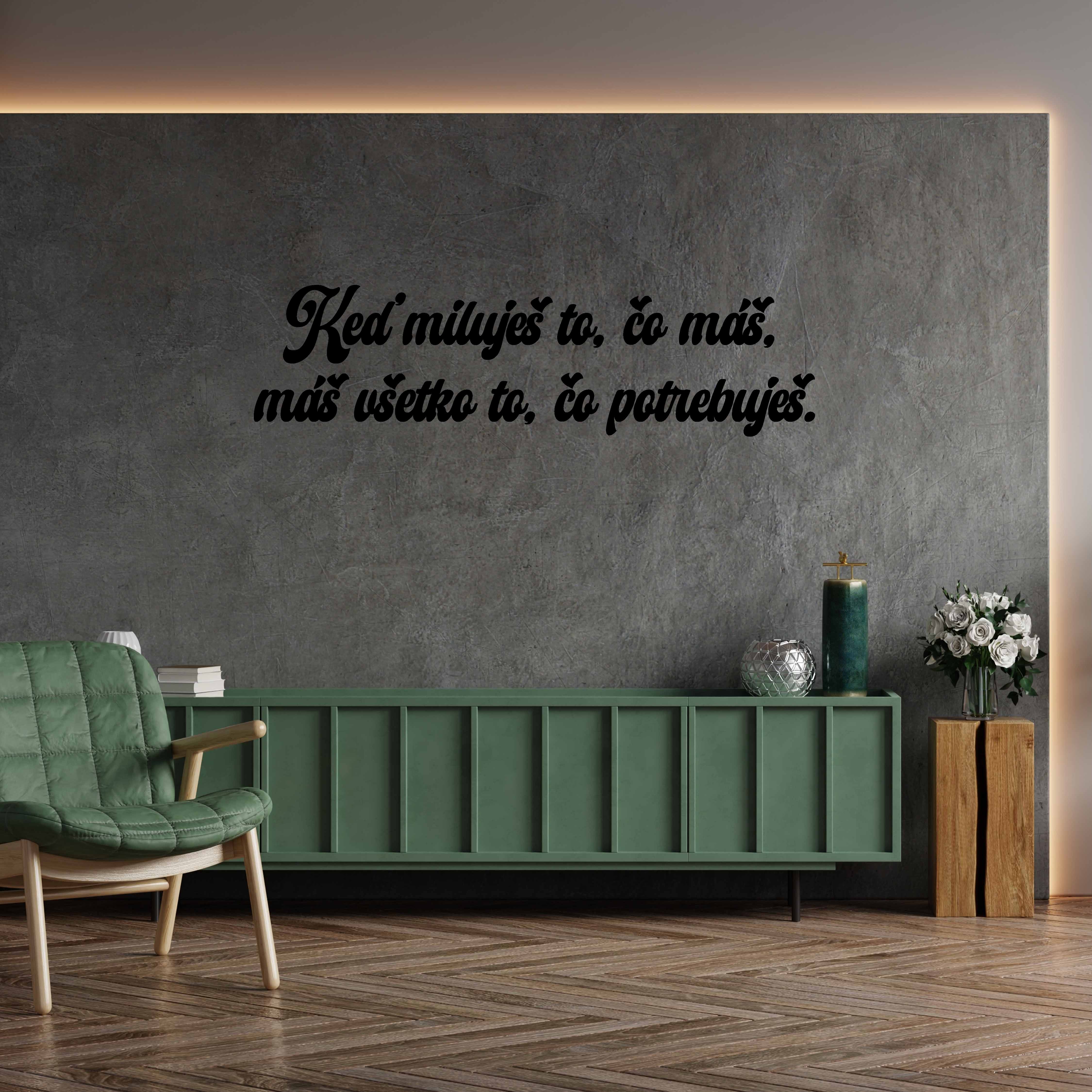 Drevený nápis na stenu - Keď miluješ to, čo máš, máš všetko to, čo potrebuješ.