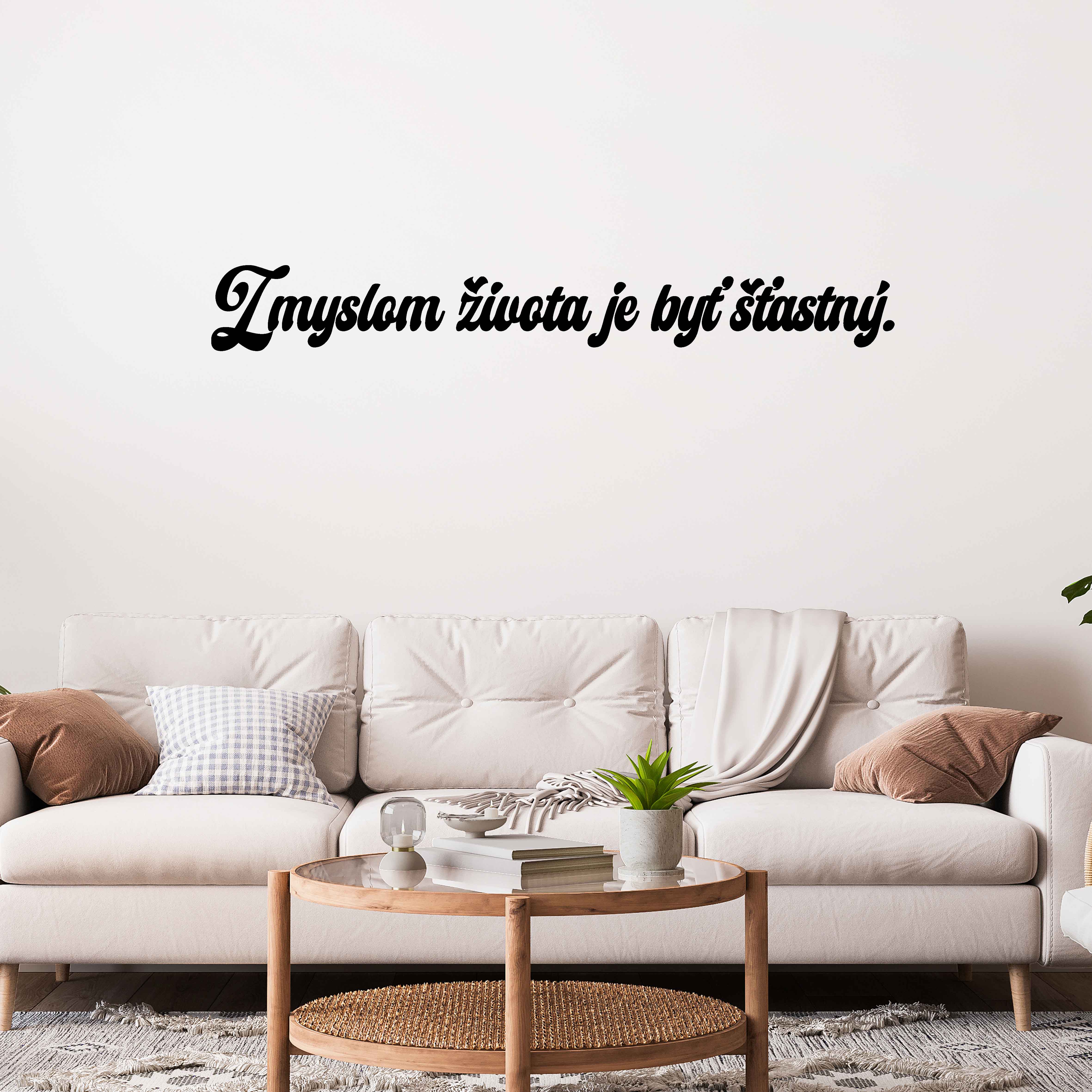 Drevený nápis na stenu - Zmyslom života je byť šťastný.