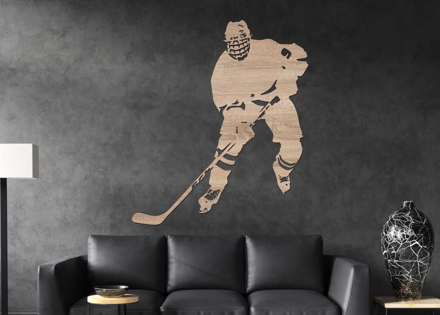 Tento drevený obraz hokejista v akcii zachytáva okamih dynamiky a odhodlania na ľade 🏒. Silueta hráča v pohybe, so zdvihnutou hokejkou, symbolizuje bojovnosť, sústredenie a rýchlosť hry. Motív je precízne vyrezaný z HDF dreva (3 mm) s dôrazom na každý detail výstroja.