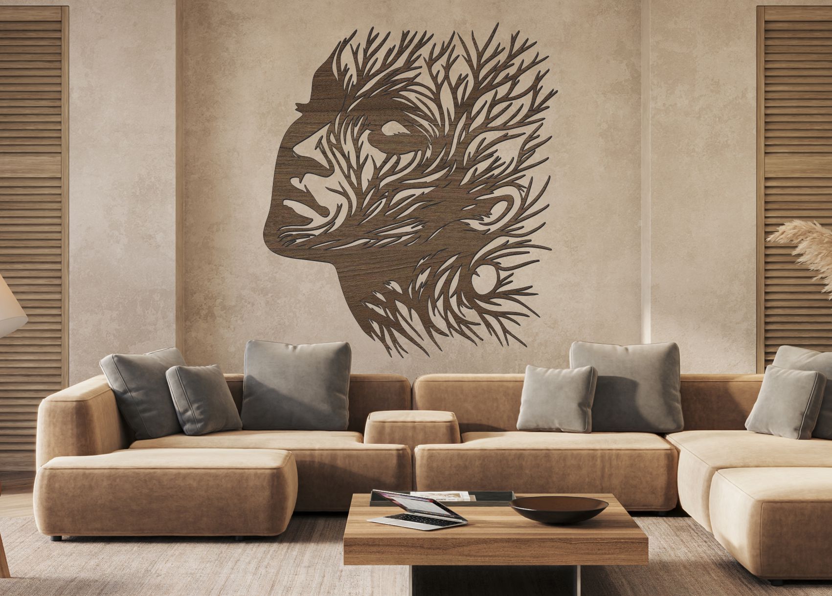 Drevený obraz na stenu – silueta ženy v líniách je moderná dekorácia, ktorá v sebe spája jemnosť, eleganciu a výrazný dizajn. Motív ženy vytvorený z organických línií pôsobí umelecky a zároveň veľmi prirodzene, čím dodáva priestoru jedinečnú atmosféru.
