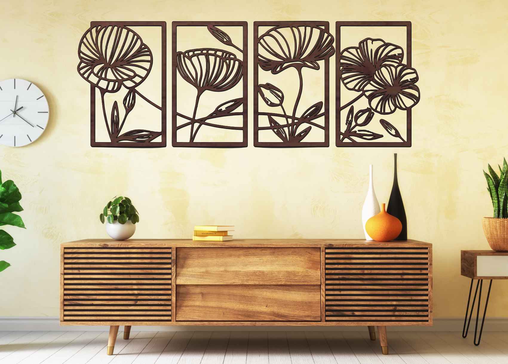 Štvordielny obraz na stenu – KvetyTento drevený obraz na stenu je jedinečnou dekoráciou, ktorá dodá vášmu interiéru eleganciu a štýl. Štvordielne prevedenie vytvára pôsobivý vizuálny efekt, ktorý oživí každý priestor....