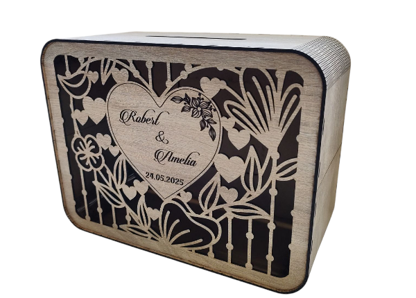 Svadobná truhlica na peniaze - vyrezávaná so srdcom