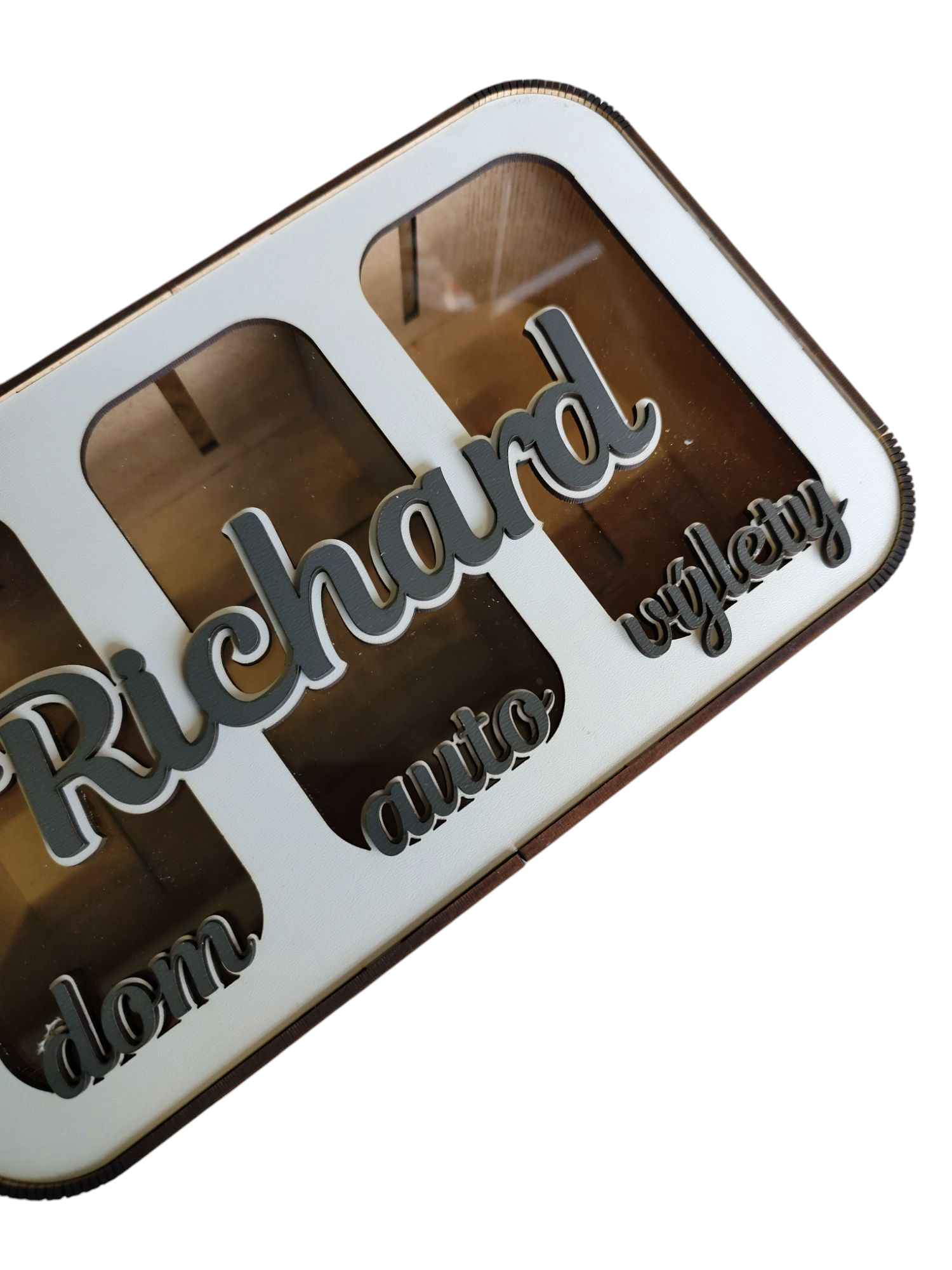 Táto drevená pokladnička je nielen praktickým úložným priestorom, ale aj jedinečnou dekoráciou do vášho domova. Vyrobená z kvalitného dreva, ponúka možnosť personalizácie – môžete si vybrať písmeno a meno, ktoré bude zdobiť jej povrch. Vďaka precíznemu spracovaniu a elegantnému dizajnu sa skvele hodí do každej domácnosti.
